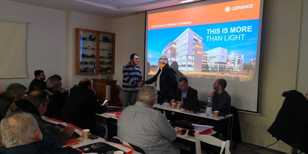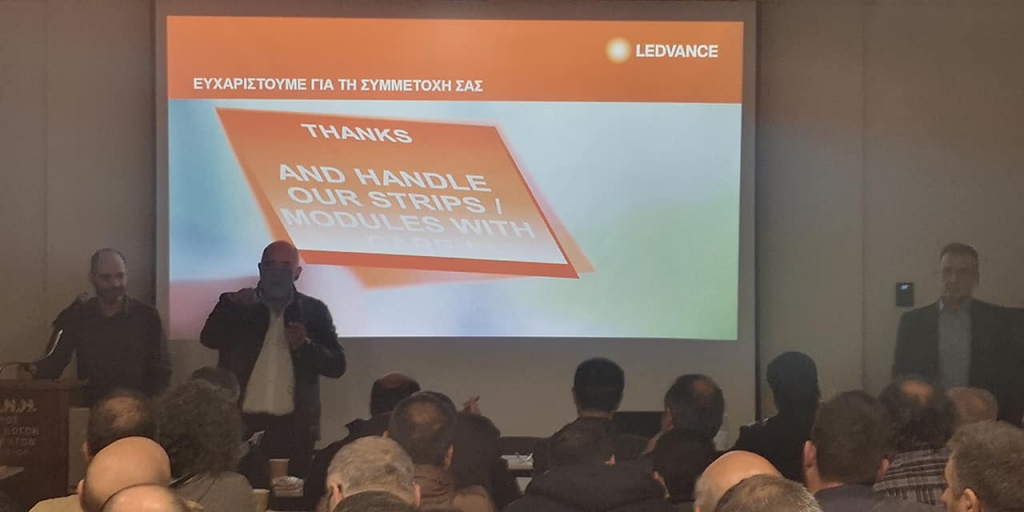 Με μεγάλη συμμετοχή πραγματοποιήθηκε την Δευτέρα 24 Φεβρουαρίου 2020, στην αίθουσα του Σ.Η.Ε.Ν.Η το σεμινάριο της εταιρείας LEDVANCE A.E με θέμα : «LEDVANCE Φωτιστικά και ταινίες LED», το οποίο παρακολούθησαν μέλη του Συνδέσμου μας και συνάδελφοι από τον ηλεκτρολογικό κλάδο.